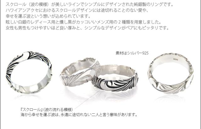 シルバーアクセサリー リング ハワイアン メンズ レディース スクロール 波 r0731