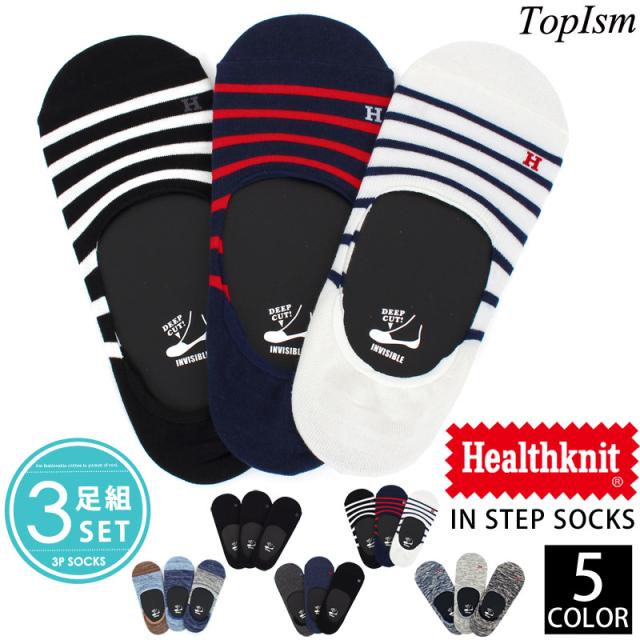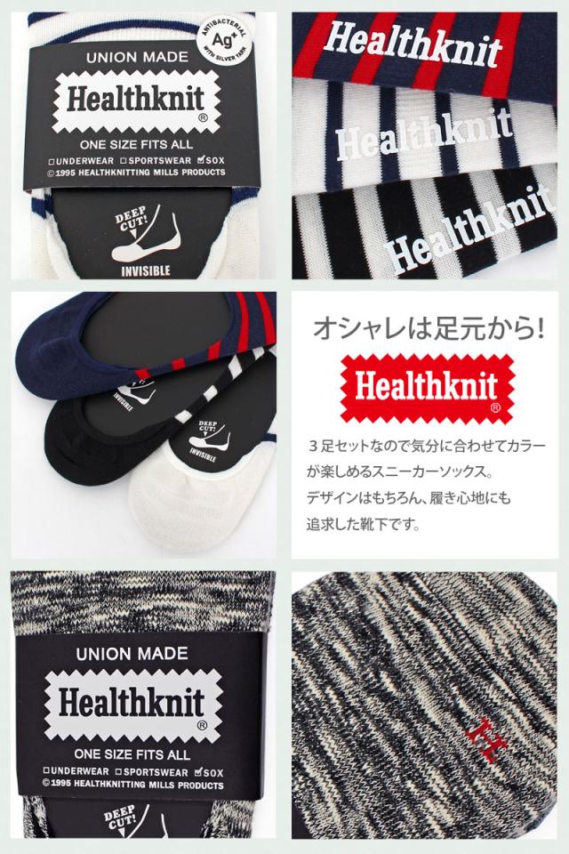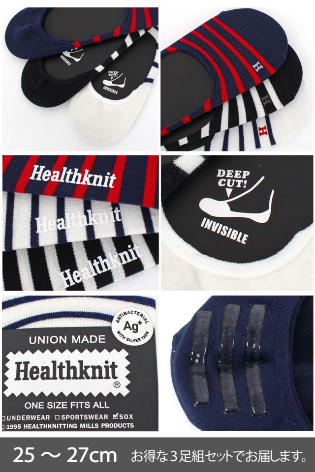 送料無料 Healthknit/ヘルスニット/3足セット/抗菌防臭Ag加工/ボーダー無地スラブショートソックス/スニーカーソックス/インステップソックス/メンズ靴下 ゆうパケ