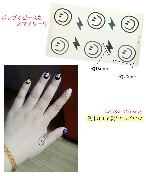 本日P2倍 タトゥーシール スマイリーとカミナリ 雷 フェイクタトゥー タトゥーステッカー ハロウィン