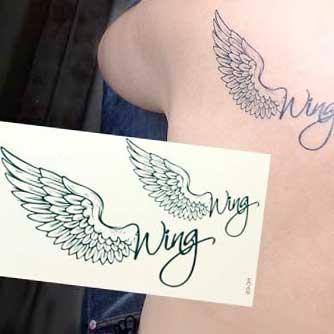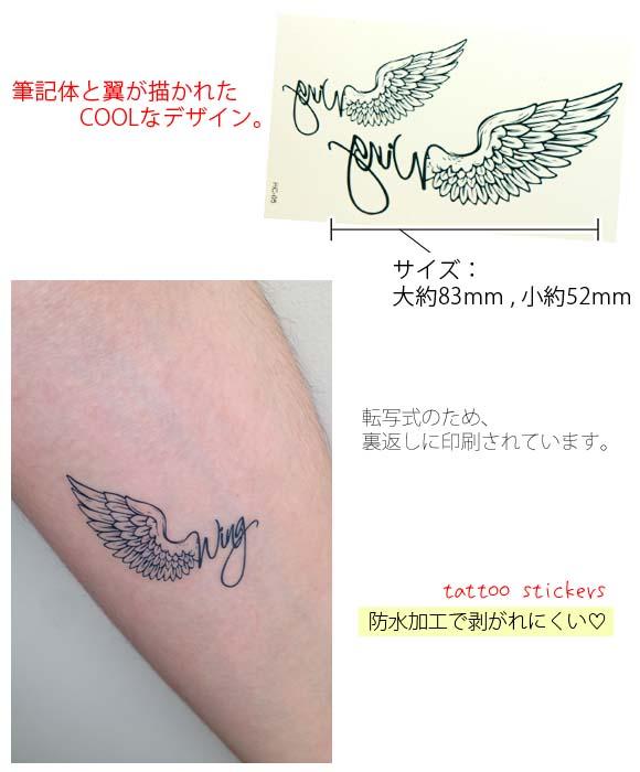 本日P2倍 タトゥーシール 筆記体wingと翼 羽 英文字 フェイクタトゥー タトゥーステッカー ハロウィン