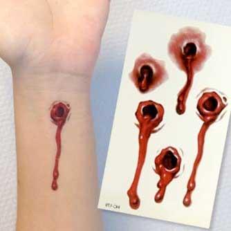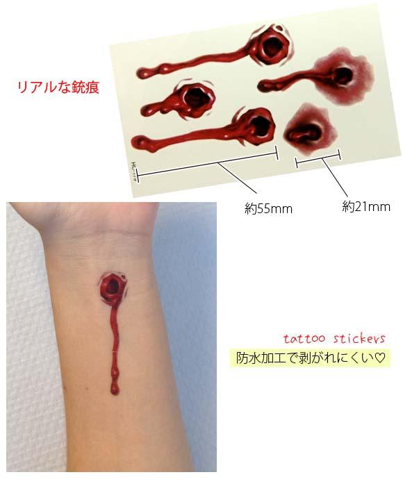 本日P2倍 タトゥーシール 銃痕A 傷 キズ 血 ゾンビ フェイクタトゥー タトゥーステッカー ハロウィン