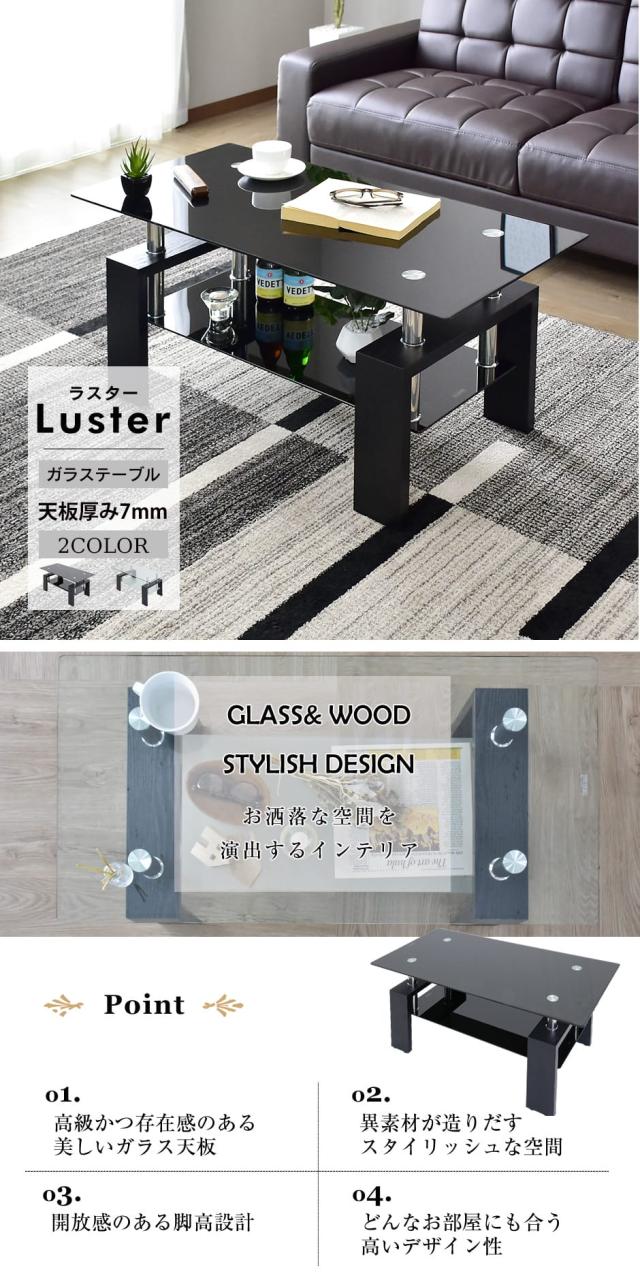 テーブル センターテーブル ガラス 100 ローテーブル 収納 ブラック 高級感 リビング ラスター インテリア家具 おすすめ おしゃれ 北欧 big_ki プレゼント tm