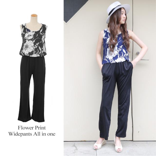 ★花柄シフォン×ワイドパンツオールインワン/コンビネゾン▽◆420784