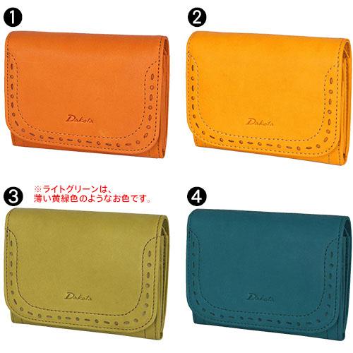 ダコタ Dakota!花びらみたいなパンチングを施した二つ折り財布≪送料無料≫商品:APEGO(アペーゴ)/二つ折り財布(35270)カラー:1.キャメル,2.マスタード,3.ライトグリーン,4.ネイビーサイズ(約):横12.5×縦10×マチ3cm素材:牛革重さ(約):110g生産国:中国備考:【メイン開閉】ホック外側/フリーポケット×1内側/L字ファスナー小銭入れ×1(仕切り有)札入れ×2層カードポケット×9フリーポケット×3