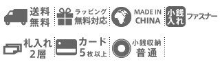 | 備考 | 【メイン開閉】ホック 外側/ フリーポケット×1 内側/ L字ファスナー小銭入れ×1(仕切り有) 札入れ×2層 カードポケット×9 フリーポケット×3 | ||