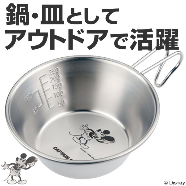 ディズニーの短編映画シリーズのデザインが可愛らしいシェラカップです。ステンレス製なので、直接火にかけて鍋としてご使用いただけます。また、落としても割れないためアウトドアで活躍してくれます。