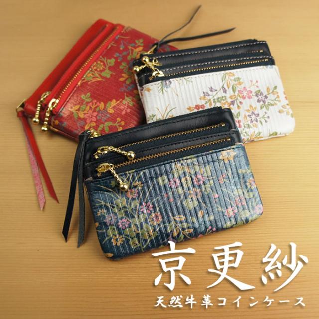 コインケース 京更紗 小銭入れ 財布 ファスナー ジッパー 花柄 和風 日本 和柄 本革 牛革 トリプルファスナー