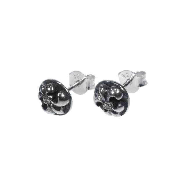 ヨーロッパで王家の紋章としてよく使われるモチーフであるユリの紋章(フルール・ド・リス)のシルバーピアスです。