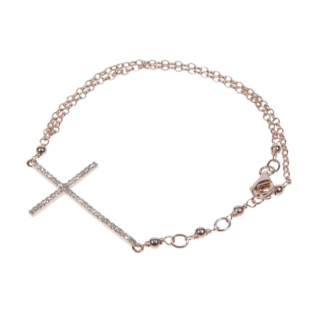 石輝 スタイリッシュなピンクゴールド18Kクロスブレスレット ジルコニア