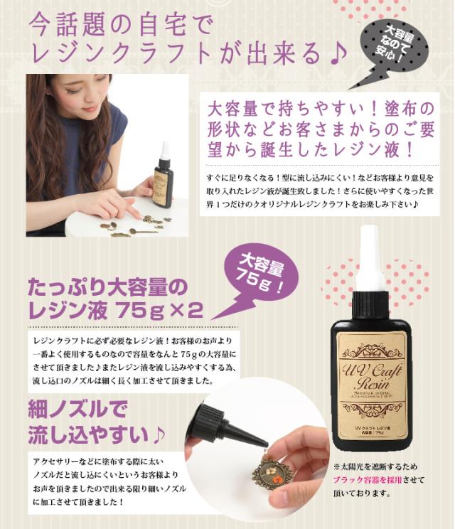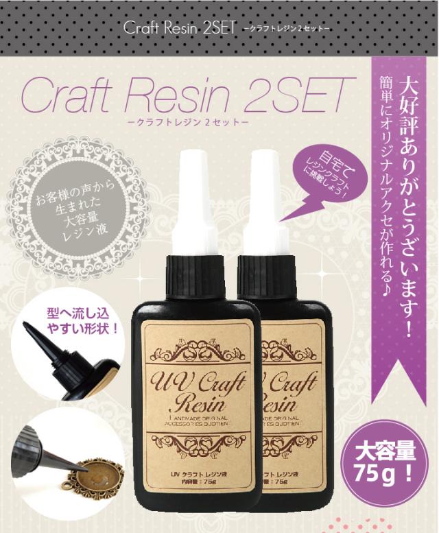 レジン液【メール便可】UVクラフトレジン液 75g(2本) 【ハードタイプ UV/LED対応】LEDライトでも固まる♪まとめてお得な2本セット!