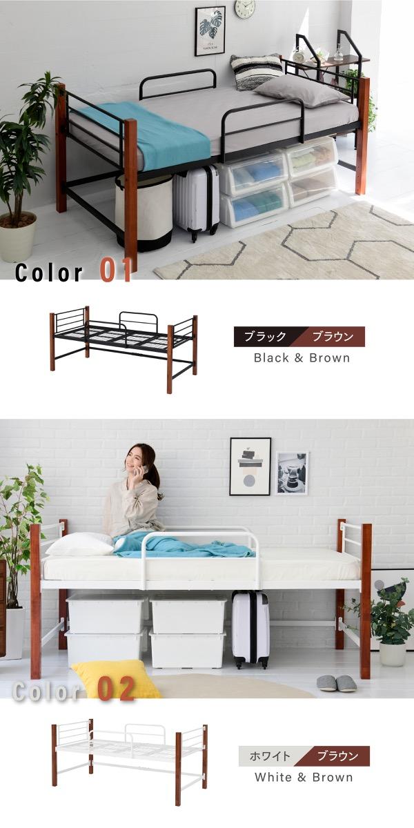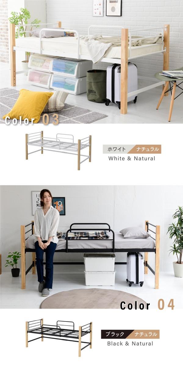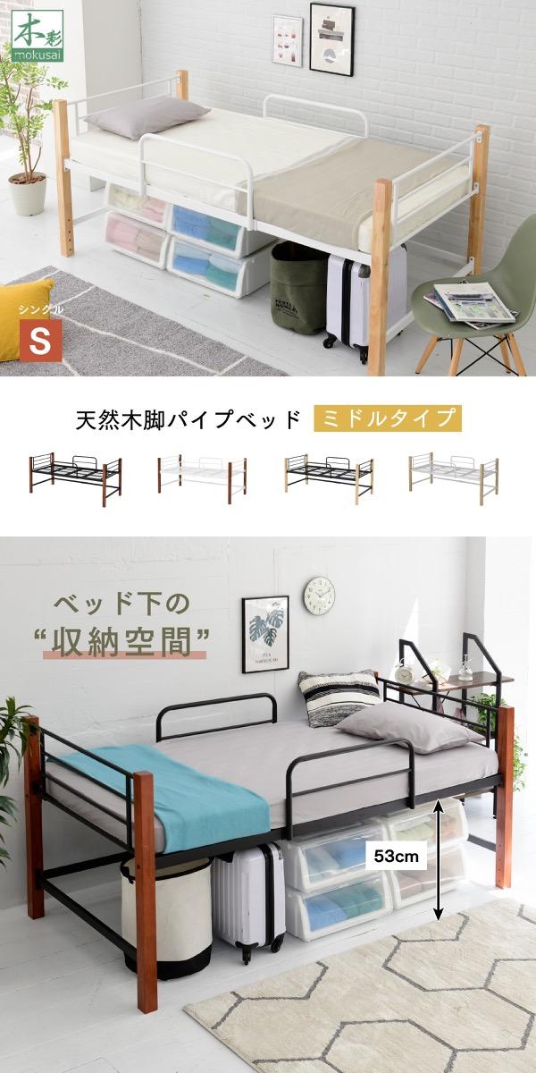 天然木脚 シングル ベッド 天然木 アイアン パイプ フレーム 高さ 96cm 幅 209cm 高め ハイタイプ ベッドフレーム 頑丈 ミドルベッド スチールベッド パイプベッド