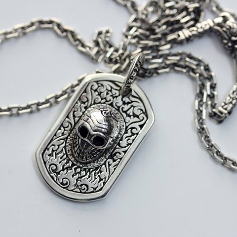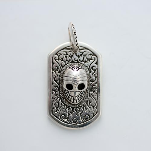 チベタン・スマイル・スカル・ドッグタグ・ペンダント