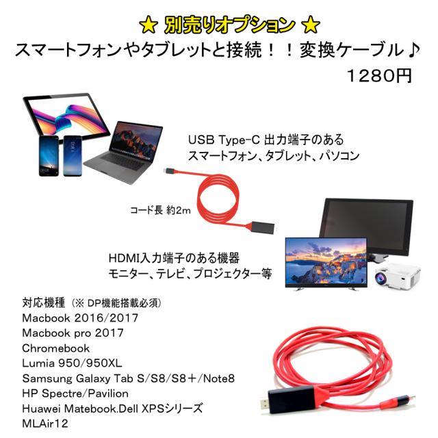 オプションのHDMI変換ケーブルは対応機種をご確認のうえご購入ください。