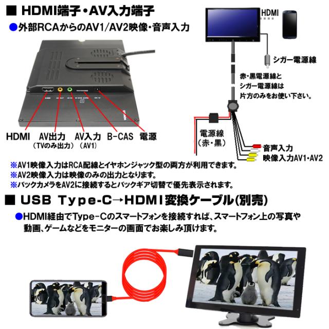 | 付属品 | 本体、デジタルアンテナx2、リモコン スタンド、外部映像・音声入出力ケーブル シガー電源、英語取扱説明書、ミニB-CASカード |