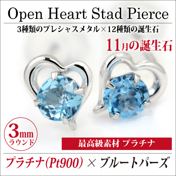 ブルートパーズ ピアス 送料無料 Pt900プラチナ オープンハート スタッド 両耳ペア ダブルロックキャッチ付き