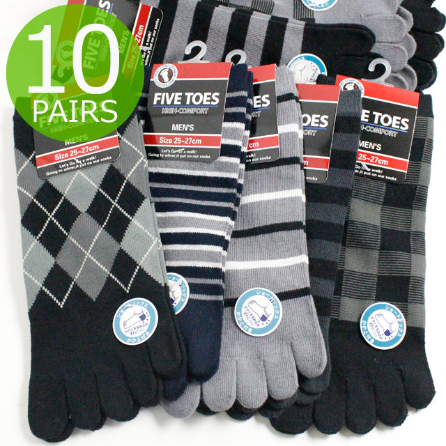 靴下 メンズ 5本指 ソックス / モノトーンカラーの10足セット かかと付きタイプ