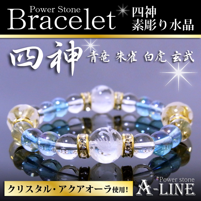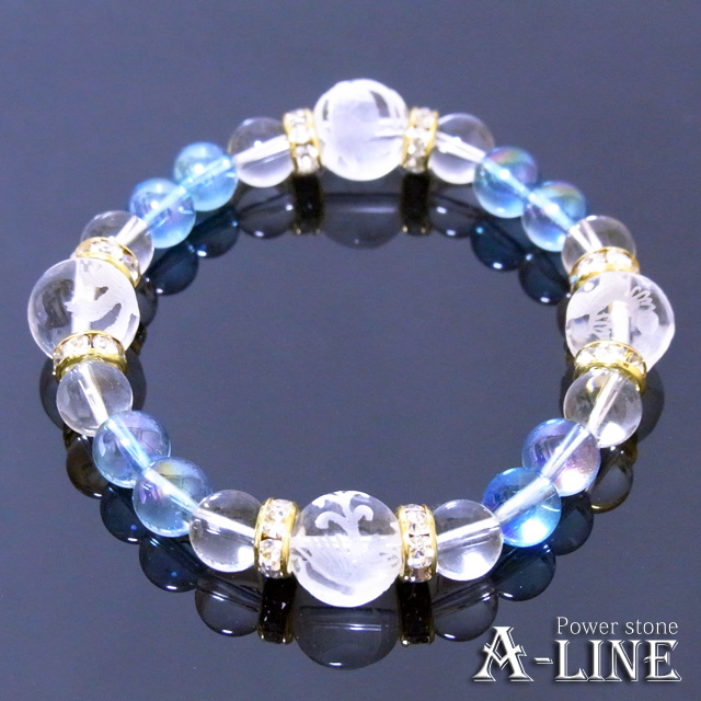 パワーストーン ブレスレット 四神素彫り水晶12mm&アクアオーラ&水晶8mm PW-2877