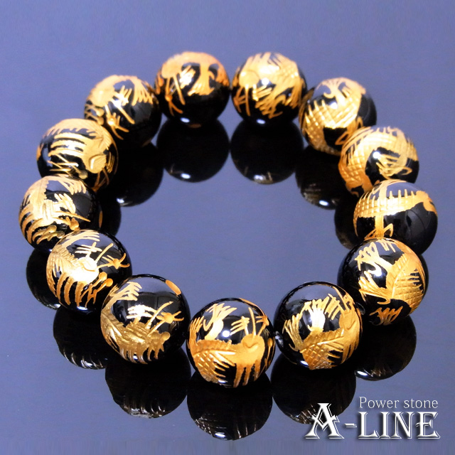 青龍金彫りオニキス大玉16mmのパワーストーンブレスレット