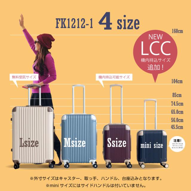 ※Lサイズは航空会社により三辺の合計が規定を超える場合がございますのでご確認くださいませ。