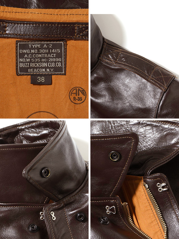 BUZZ RICKSON'S バズリクソンズ A-2 フライトジャケット メンズ A2 ジャケット レザー 馬革 ブロンコハイド ホースレザー エアロレザー社 赤リブ 日本製 東洋 BR80644