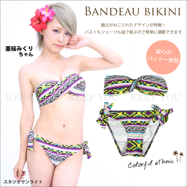 ビキニ バンドゥブラ チューブトップ パッド付 カラフル エスニック柄 sw-h5002 =┃