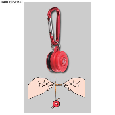『ノットアシスト』にPEラインを巻きつけ、重みでピンと張ったPEラインにリーダーをS字状に巻きつけるだけで簡単に編み込みができます。ロッドにPEラインをセットしたまま両手で結束作業ができるので、編み込み式ノットが初めての方や現場でも簡単・確実・スピーディに結束できます。■詳細:カラビナ付き