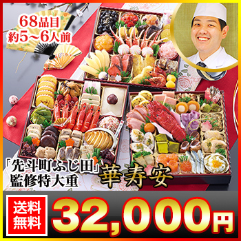 8.5寸三段豪華特大おせち 【68品目・5〜6人前】 京都先斗町 「ふじ田」監修特大重 華寿安 【送料無料】 冷蔵おせち 冷蔵 おせち お節 御節