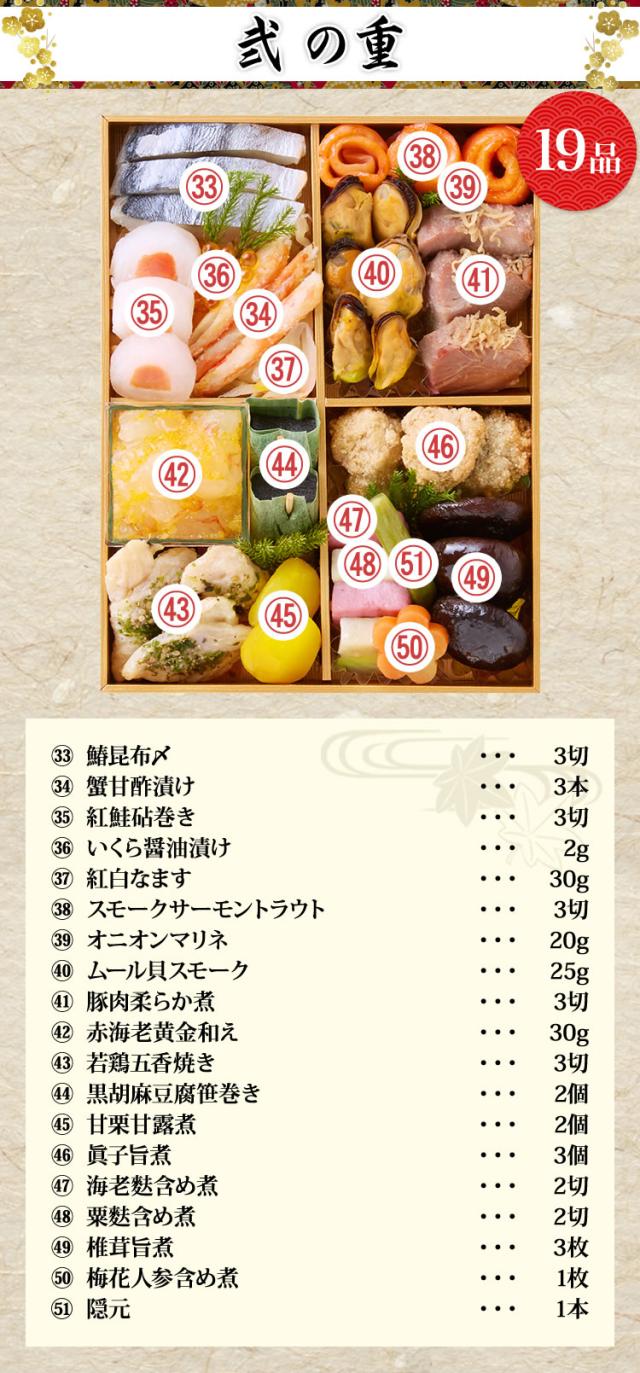 - 最初開けた時、ちょっと足りないかなと思いましたが、小ぶりながらも種類が多く、味も良く、大変満足でした。 結果、大人5人で丁度良い量でした。 来年も、またお願いしようかなと思います。 お正月の食卓をワク...
