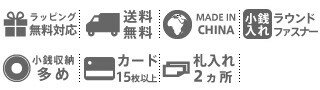 | 備考 | 【メイン開閉】ラウンドファスナー 外側/ フリーポケット×1 内側/ L字ファスナー小銭入れ×1 札入れ×2 カードポケット×16 フリーポケット×3 | ||