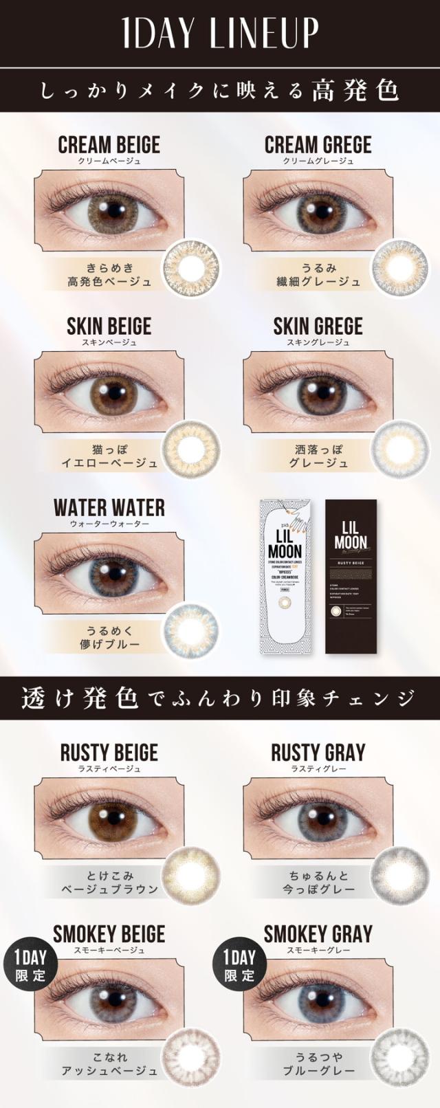 ■販売名:ワンデーツッティアルファ、ピアコンタクトアクア(スモーキーベージュ、スモーキーグレー、ラスティベージュ、ラスティグレー)