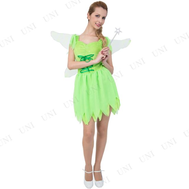 コスプレ 仮装 CLUB QUEEN Lime Fairy(ライムフェアリー) ユニエンタープライズ ピーターパン コスチューム 仮装 コスプレ衣装 童話 おとぎ話 大人 背中ファスナー開き ウエストゴム 羽付き ステッキ付き