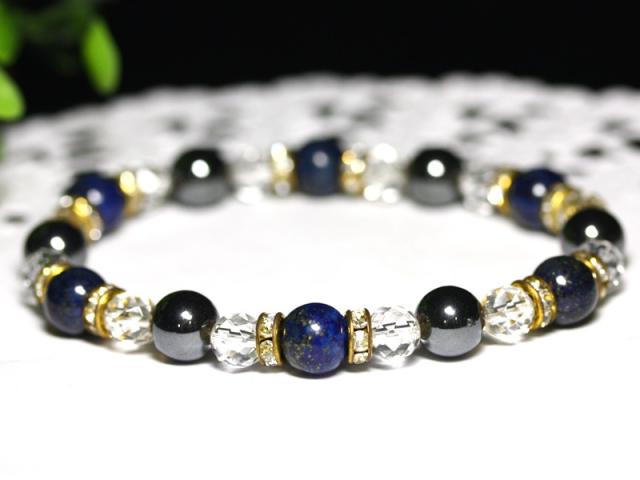 ☆オリジナルデザイン☆【天然石 ブレスレット】ラピスラズリxヘマタイト★勝利へ導くお守り! パワーストーン