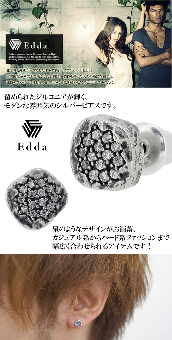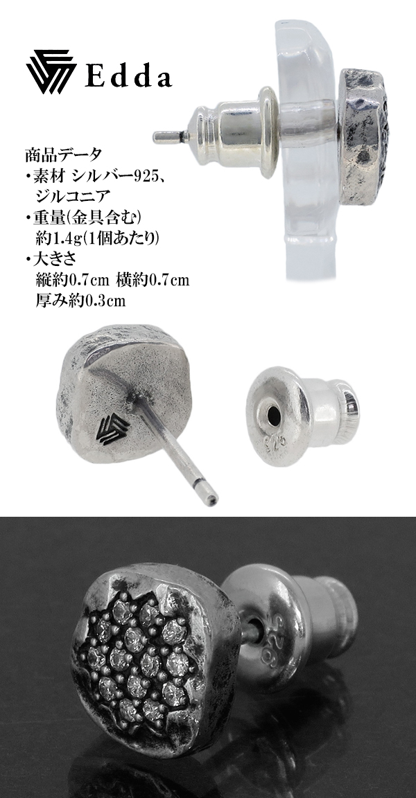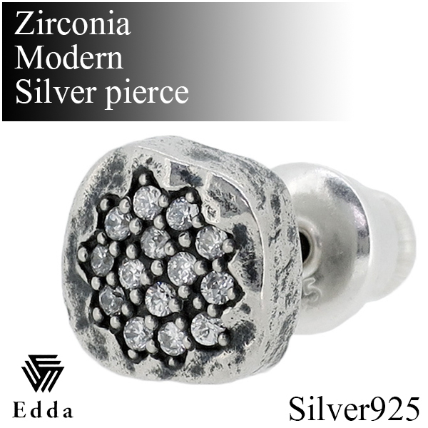 【Edda エッダ】ジルコニア モダン シルバー ピアス (1P 片耳用)シルバー925 メンズ 男性用 ピアス 片耳 ブランド ユニーク