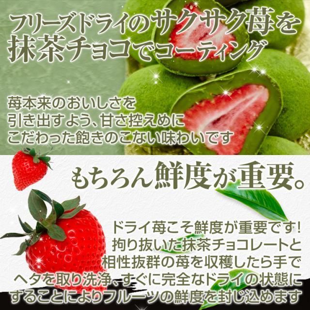 - 以前から気になっていて完売されてたので入荷通知設定していました。 入荷通知が来たので即購入。 箱が素敵です。 個装ではないので、瓶に詰めました。 抹茶チョコとイチゴの組み合わせは初めて! イチゴの甘酸...