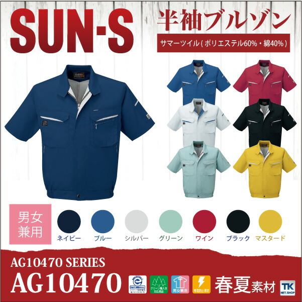 半袖ブルゾン サンエス SUN-S 作業服 作業着 定番人気モデル 作業ジャンパー 春夏 半袖 ジャケット ss-ag10470-b
