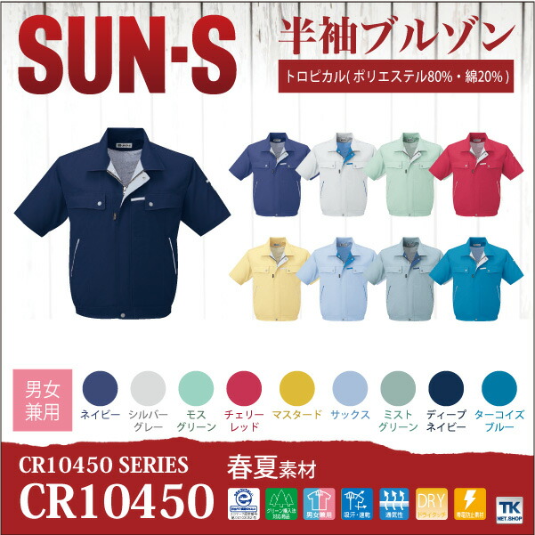 半袖ブルゾン サンエス SUN-S 作業服 作業着 トータルコーディネート 作業ジャンパー 春夏 半袖 ジャケット ss-cr10450