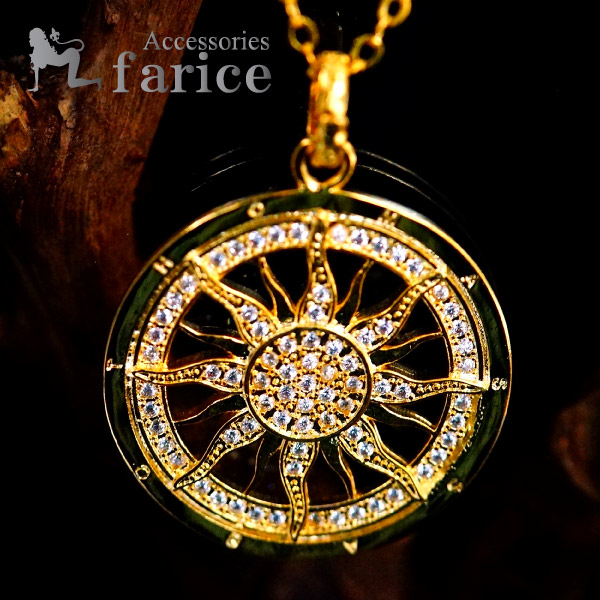 ★(長さ約43cm×幅約2mm)あずきチェーン付き♪ ★男女問わず人気の定番・サン(太陽)デザイン! ★胸元をゴージャス&華やかに飾るクリアキュービックジルコニアの輝き! ★さらに高級感が増したイエローゴールドコーティングの色鮮やかな輝き! ★もちろんプレゼントにもオススメです!