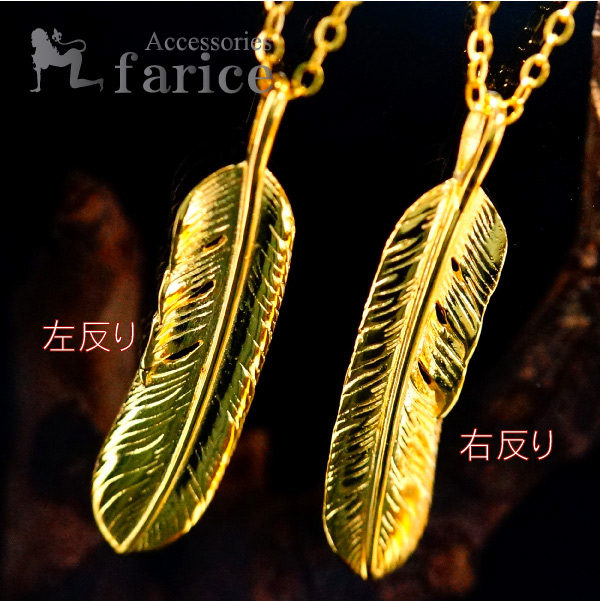 イーグルフェザー(鷲) 羽両面彫り ゴールドコーティング インディアンジュエリー シルバー925 ネックレス【右反りor左反り】