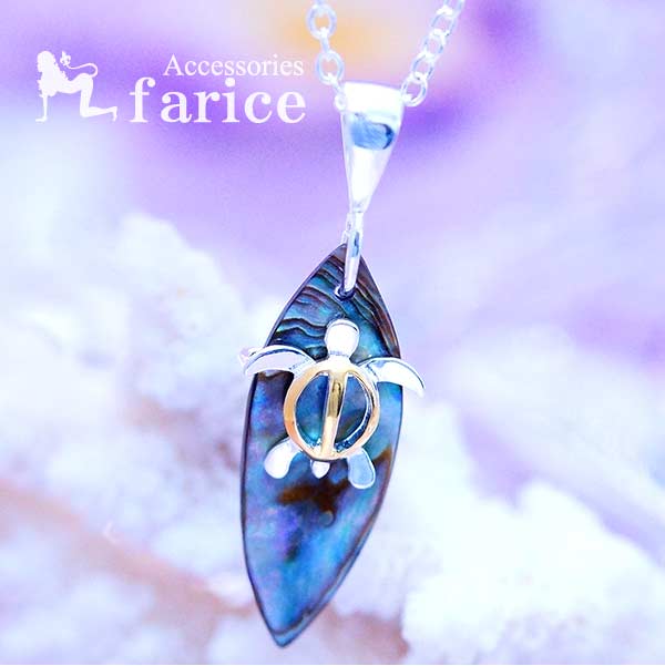 アバロンシェル サーフボード ホヌ(海がめ) ペアカラー ハワイアンジュエリー サーフィン シルバー925 ネックレス ペンダント
