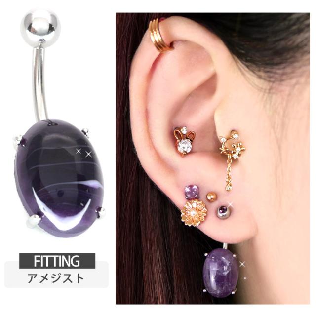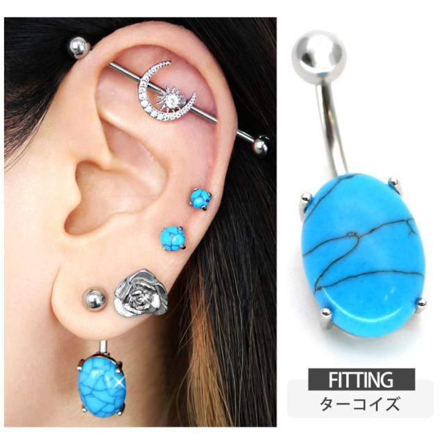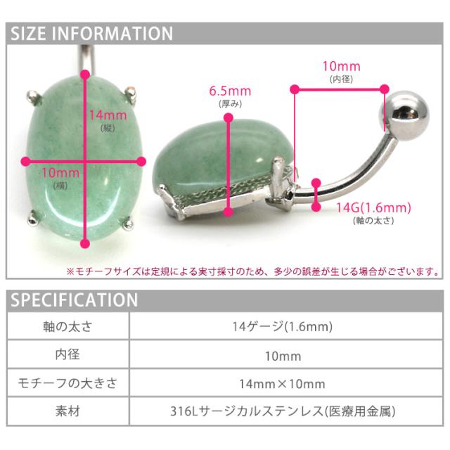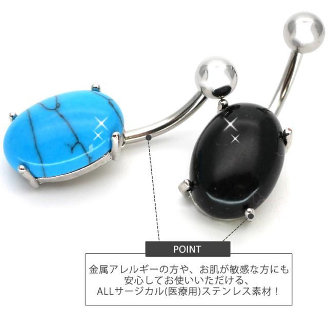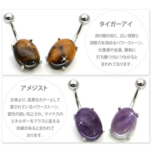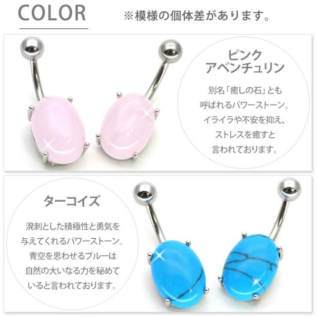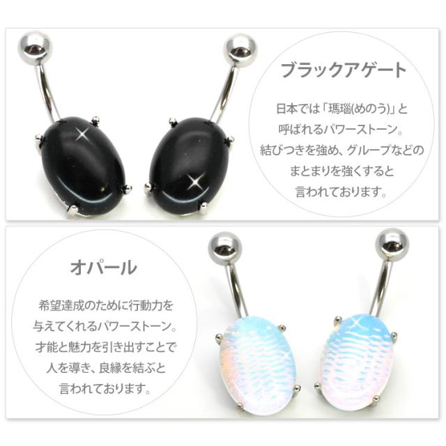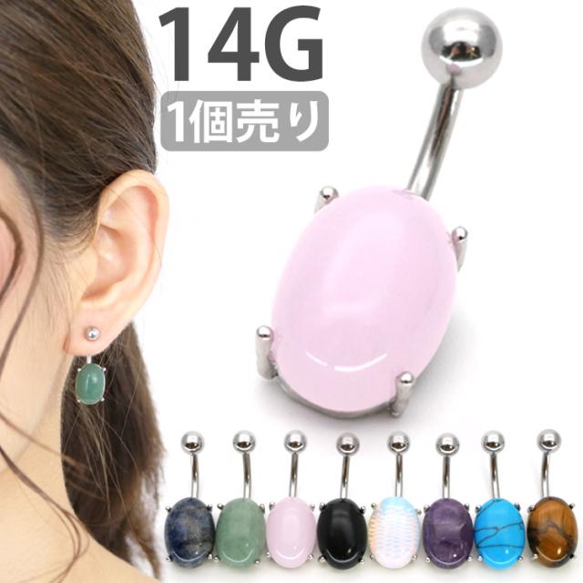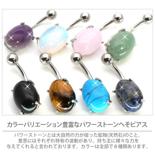 ボディピアス へそピアス 天然石を使用したパワーストーンオーバルネイブル 14G ピアス ヘソピアス