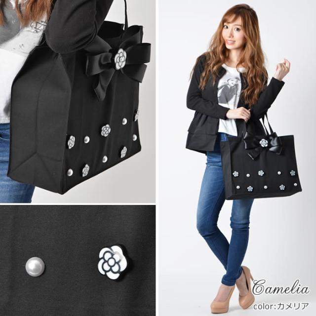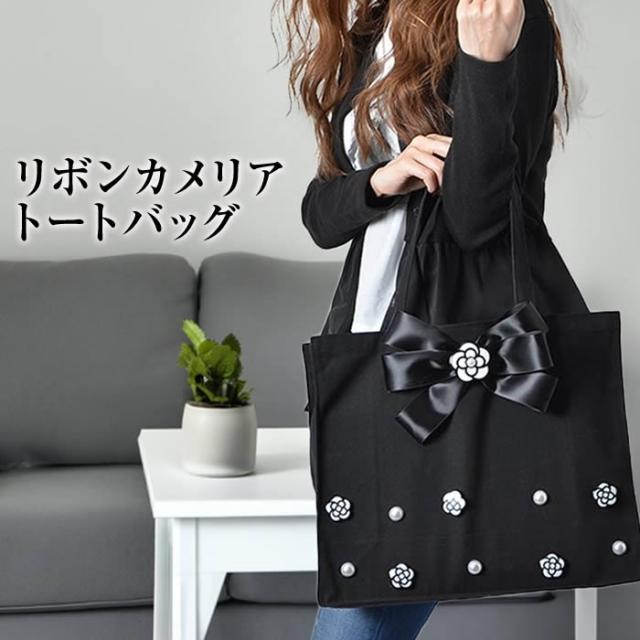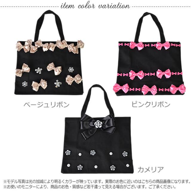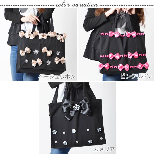 トートバッグ 5営業日以内入荷 宅配便配送 トートバッグ レディース トートバック トート バッグ カバン 鞄 リボン ビジュー カメリア バック bag リボンビジューカメリアトートバッグ オリジナル