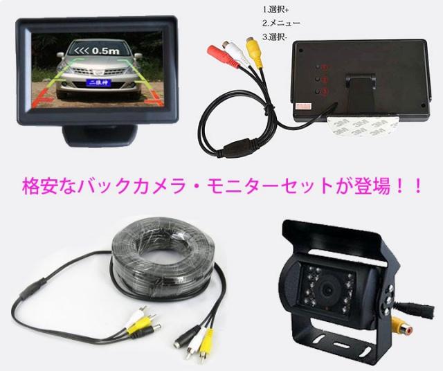 トラック対応4.3インチモニター搭載バックカメラセット12-24V RCA 汎用 ケーブル20m付き 乗用車,トラック、バス,重機等対応 BKST43