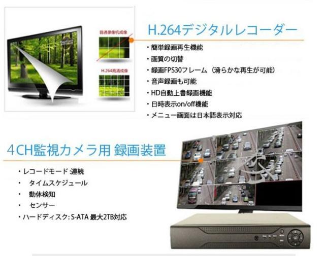 4CHデジタルレコーダー+カメラセット カメラ4台接続・同時録画可能 スマホでどこからでもリアルイム監視、遠隔操作 DVR4CHNEWSET100