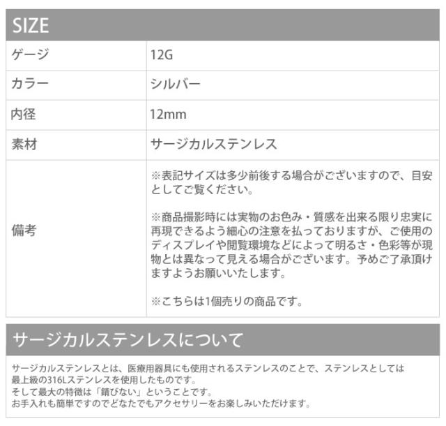 12G セグメントリング ワンタッチ サージカルステンレス ボディピアス ボディーピアス