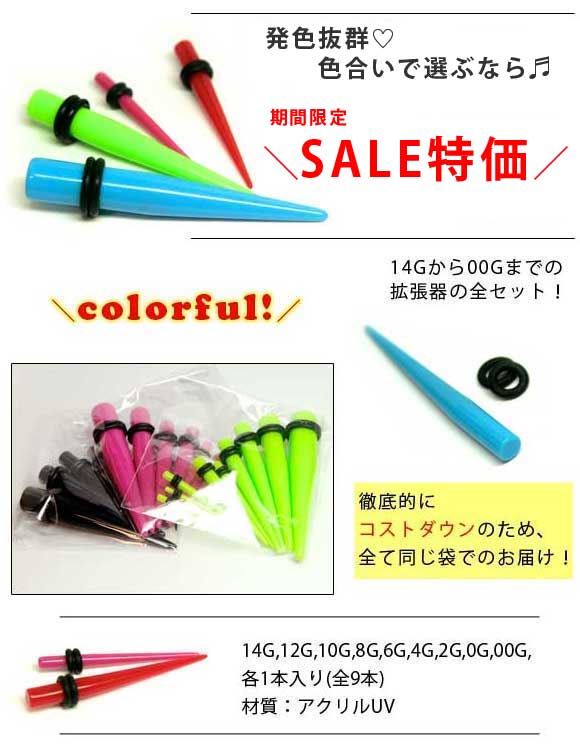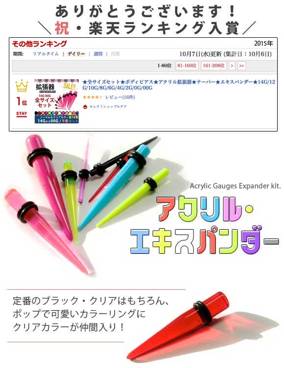 本日P2倍 国内検品 ボディピアス アクリル 拡張器 全サイズ セット テーパー エキスパンダー 14G 12G 10G 8G 6G 4G 2G 0G 00G