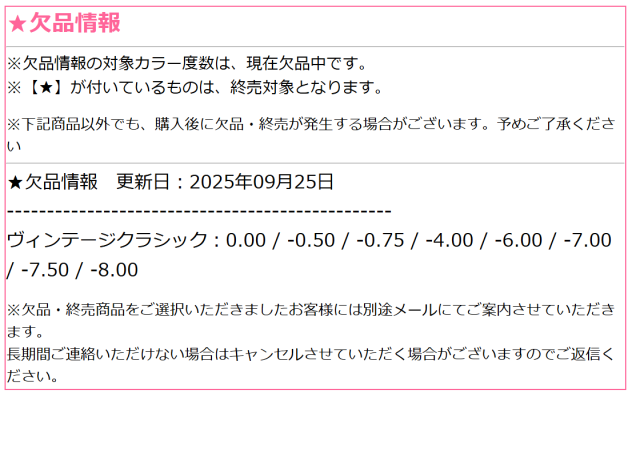 ■度数:0.00、-0.50〜-6.00(0.25ステップ) 、-6.50〜-10.00(0.50ステップ)