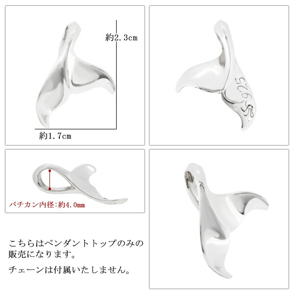 ハワイアンジュエリー ホエールテール 鯨 ペンダントトップ (チェーンなし) シルバー925 ネックレス ネックレストップ ペンダントヘッド