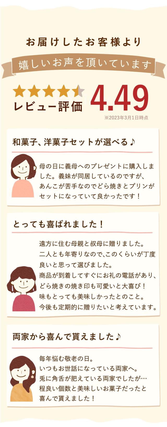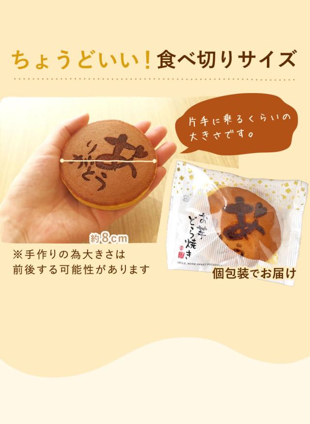 - どら焼きに文字が入っているのが決めてになりました。このような商品は近くのお店では売ってないので気に入りました。