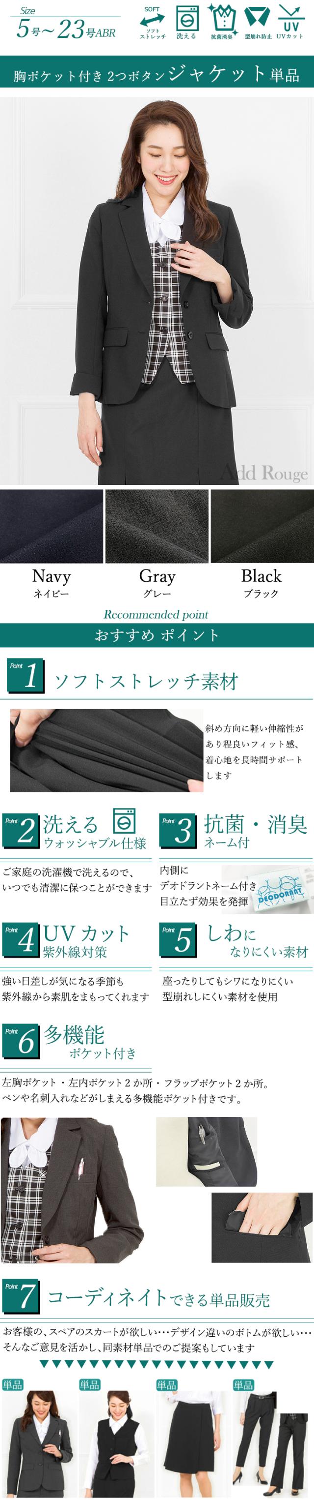ジャケット単品 レディース 洗える 消臭抗菌 テーラードジャケット 事務服 制服 2つボタン リクルート 就活 オフィス 大きいサイズ 小さいサイズ ウォッシャブル x1565526 [sk便]