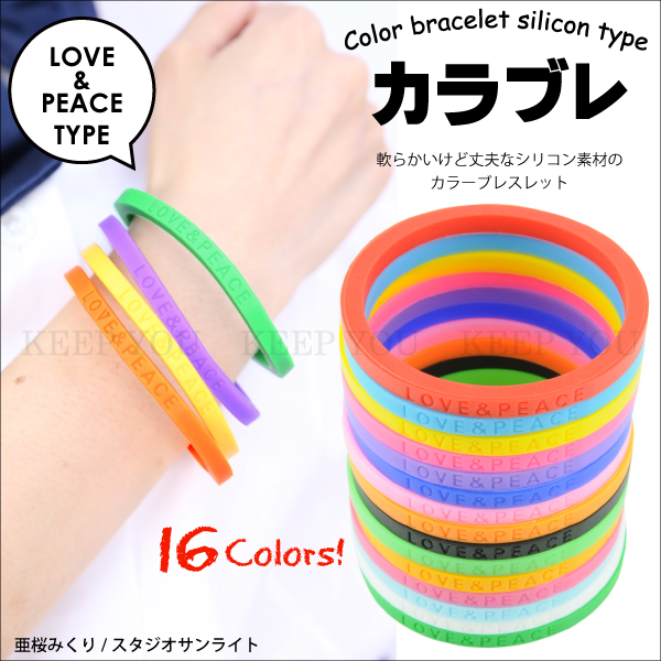 【メール便対応】カラブレ シリコンブレスレット LOVE&PEACE デザイン カラーブレス【ラブ&ピース】プロミス ブレス BRACELETS-4 ┃